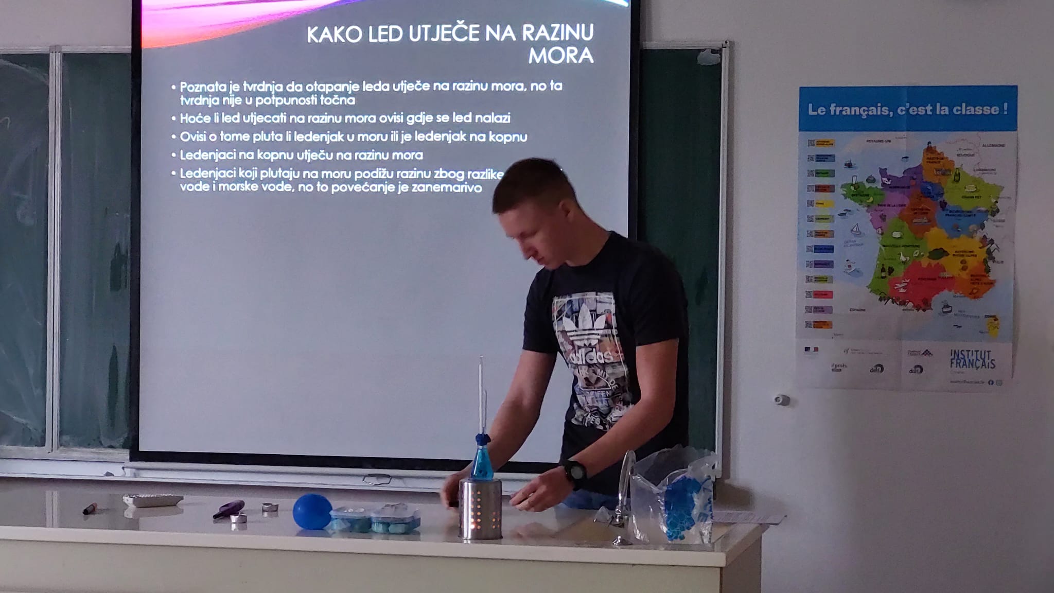 Predavanjem Život uz more te zanimljivim demonstracijskim pokusima učenici Danijel Matejić i David Šarić te profesorice Ivona Vladović i Damira Čupić pokazali su kako globalno zatopljenje utječe na razinu mora te na živote ljudi i ekosustava.