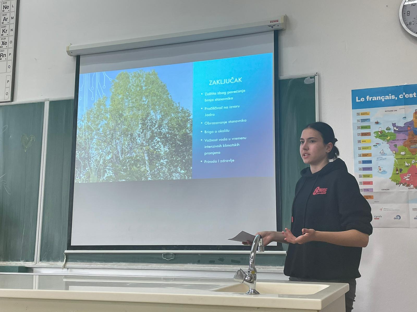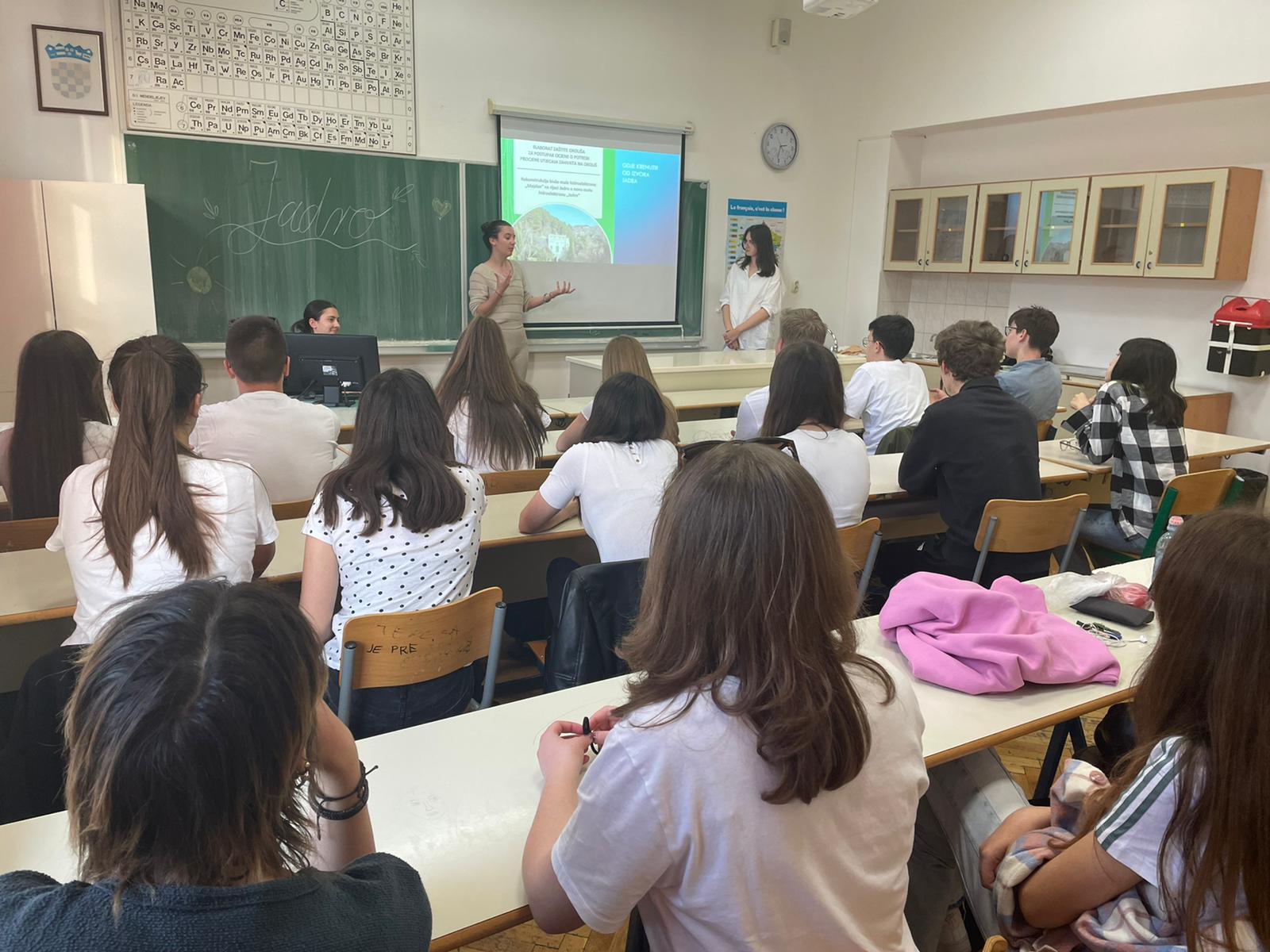 Predavanjem Voda je život učenice Petra Bajić, Mia Milardović i Lina Blagaić zajedno s profesoricom Tinom Franić, ukazale su na važnost očuvanja rijeke Jadro i ostalih rijeka aglomeracije Splita. Učenici koji su sudjelovali na predavanju aktivno su rješavali zadatke.