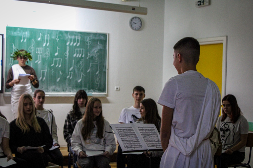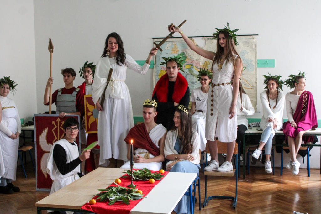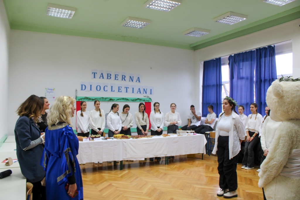 U ponedjeljak, 20. studenoga obilježili smo Dan škole temom “Putovima Dioklecijana”. Svaki je razred trebao osmisliti svoju izvedbu zadane teme koju je Povjerenstvo, obilazeći razrede, vrjednovalo. Učenici su mogli birati između prikaza hrane, odjeće, ratovanja, glazbe i sl. u doba Dioklecijana. U Povjerenstvu su bile ravnateljica Dobrila Gotovac Stipančev, prof. Sanda Cambj, prof. Josipa Vujčić, prof. Sandra Baloević i pedagoginja Ines Grbešić.
