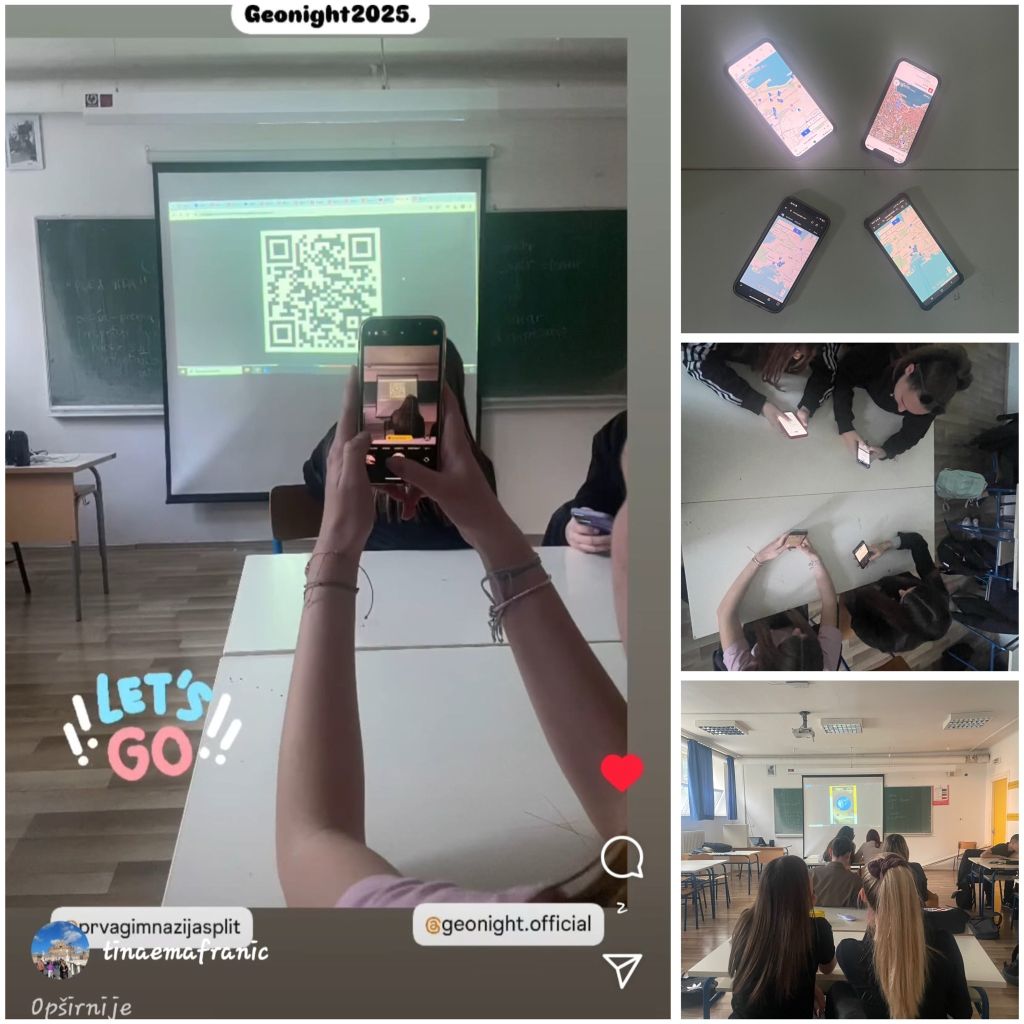 4. 04. 2025. u okviru svjetske manifestacije GeoNight 2025 u I. gimnaziji održana je edukativna i interaktivna aktivnost MatGeo izazov: Mjerenje promjena koju je pripremila prof. Damira Čupić. Izloženi su posteri na kojima su grafikonima, statističkom analizom i matematičkim modelima prikazani uzroci i posljedice globalnog zatopljenja. Sudionici su mogli odigrati digitalni escape room. Aktivnost je bila otvorena za javnost te je okupila sudionike različitih uzrasta s ciljem podizanja svijesti o globalnom zatopljenju i klimatskim promjenama te uočavanja koliko je matematika važan alat u razumijevanju ove tematike. Osim učenika I. gimnazije sudjelovali su učenici Osnovne škole Lokve-Gripe, Zdravstvene škole Split i II. gimnazije Split. U pripremi aktivnosti sudjelovale su učenice Marija Čaić, Miamarija Mihajlović i Domina Vujasinović.